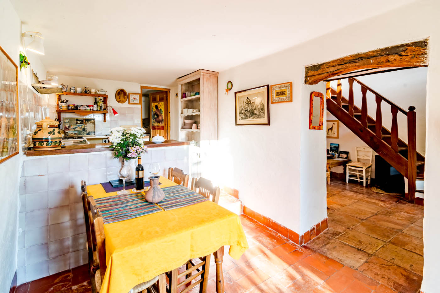 En la planta baja está el salón, la cocina y comedor. Una chimenea da calidez a este espacio donde sentarse cómodamente y empaparse de la encantadora atmósfera que se respira en la parte más añeja y morisca del pueblo. El cuarto de baño está situado junto a la cocina.