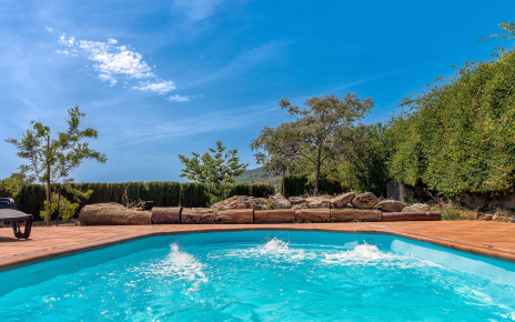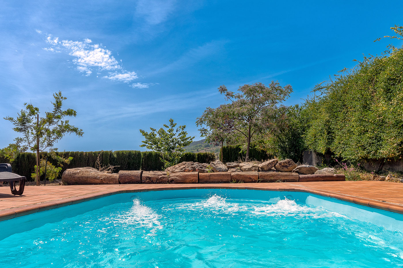 WiFi internet; Smart TV grande; Piscina cercada de agua salada (6 x 3 metros, de 1,50 a 1,80 metros de profundidad aprox.); Bañera de hidromasaje; Porche amueblado; Terraza de invierno (acristalada) con zona de barbacoa; Tumbonas; Sombrillas; Horno de leña (horno moruno); Barbacoa; Jardines y finca privada.
