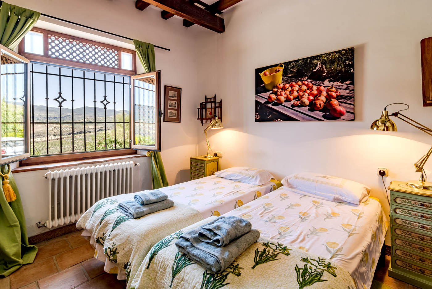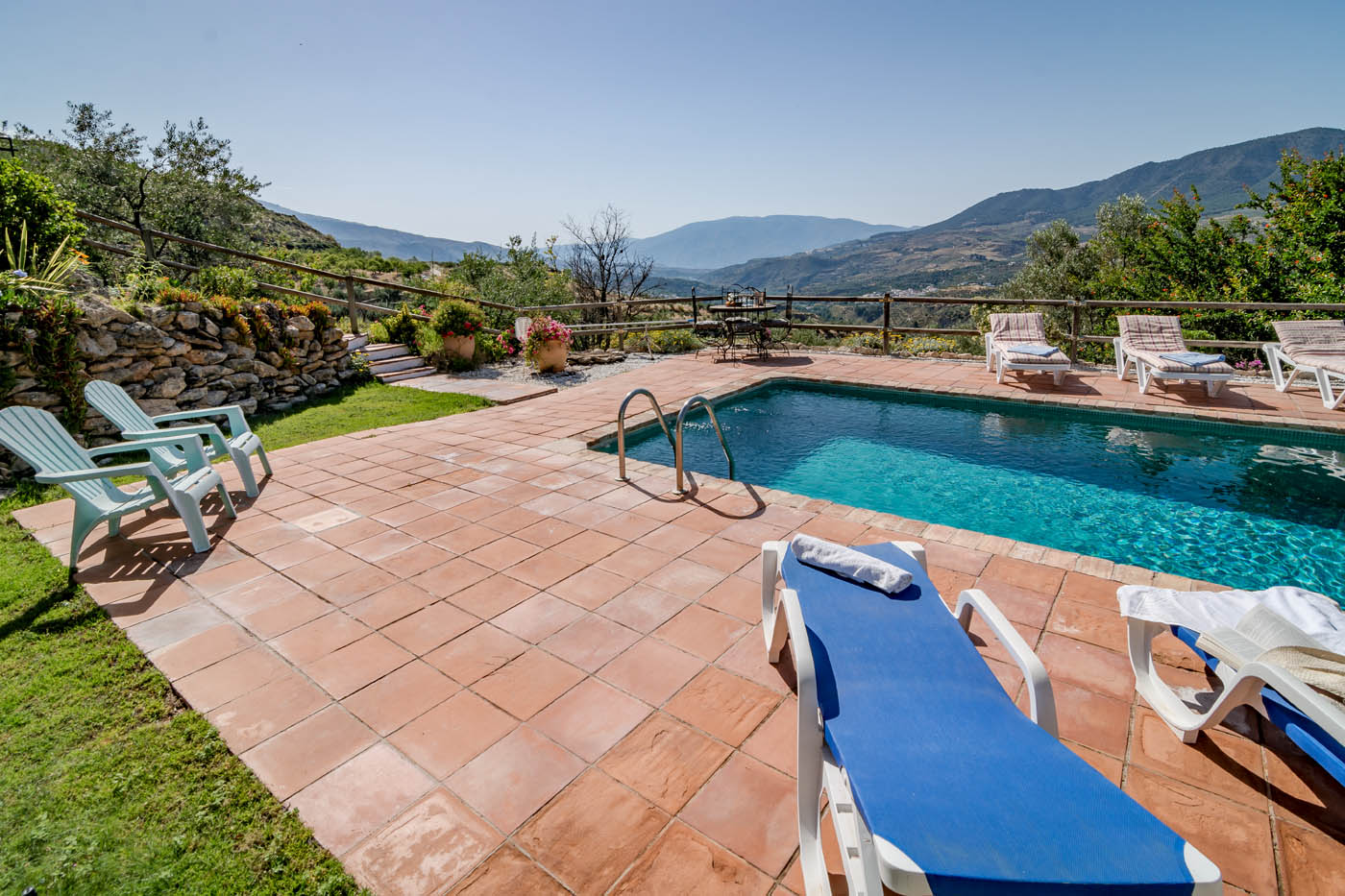 + Leer másFrom the first glimpse of El Maestro from the winding track you know it’s a special place. Surrounded by mountain ranges, looking down the valley to water and local villages, it is perfectly positioned. The house is welcoming and generous, a great balance between a superb holiday villa and a family home. A wonderful variety of spaces to eat together. A fantastic cook’s heaven of a kitchen. Using the blinds and following the suggestion of closing windows to the sun helped to keep the house cool, aided by breezes blowing through. Jasmine perfumes the air, bright geraniums, bougainvillea, roses, honeysuckle, ox-eye daisies fill the garden and walkways. Being able to walk out and pick; lemons, pomegranates, kumquats, grapes, rosemary and mint was wonderful. Charming Jose was lovely quietly working away. The wildlife was spectacular, from huge eagles, falcons, dragonflies, butterflies, baby geckos, through to grasshoppers of all colours and sizes. It was difficult to leave the pool and poolside so beautifully positioned. The pool was well looked after by Miles and his daughter who ensured all was well throughout our stay. Jen was really great, readily available to help at any point. Mari Trini was such a lovely person helping Jen to change bed linen and towels but also she cooked a wonderful meal for us (9 with various allergies) eaten on the top terrace well into the night until the sky, unpolluted by light, lit up into magnificent starlight, breathtaking. Finding fault anywhere would be immediately balanced out by all the peace and joy. A word must go to those who originally had the vision and foresight on finding this place and were inspired to create such a haven. It must have taken a lot to achieve given the ease one now experiences of living there. Claramente hemos caído bajo el hechizo mágico de El Maestro!"