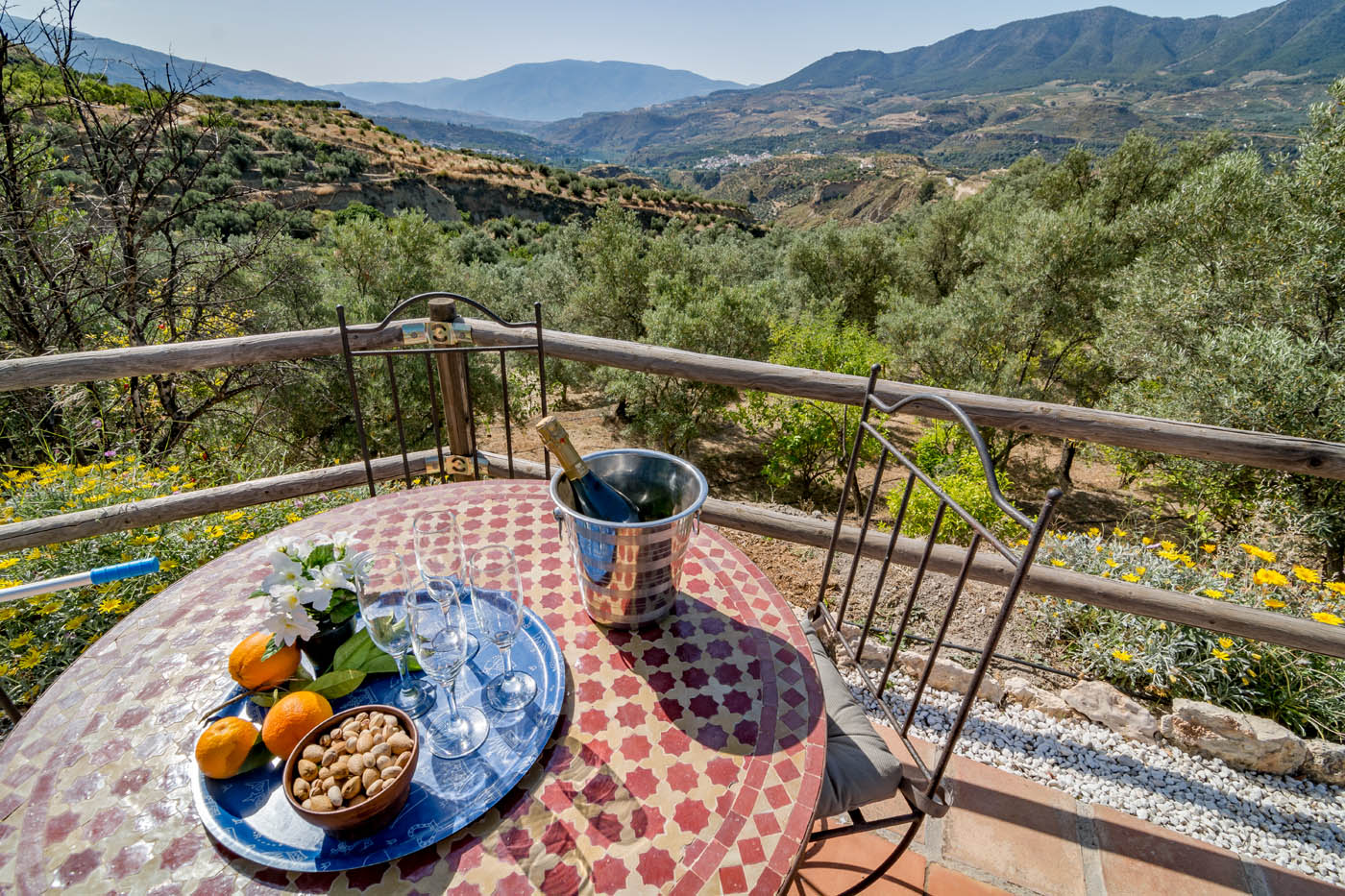 En pleno campo. En un lugar totalmente privado con vistas a todo el valle de Lecrín. Acceso a través de una pista rural de 2 km, mayormente pavimentada; todo lo que necesitas es un coche normal.