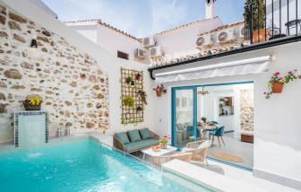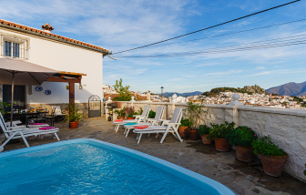 Coqueta casa bien cuidada con piscina calefactada en bonito pueblo blanco