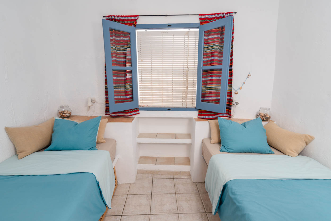 Dormitorio 3: camas individuales, zona de estar y baño privado (ducha).