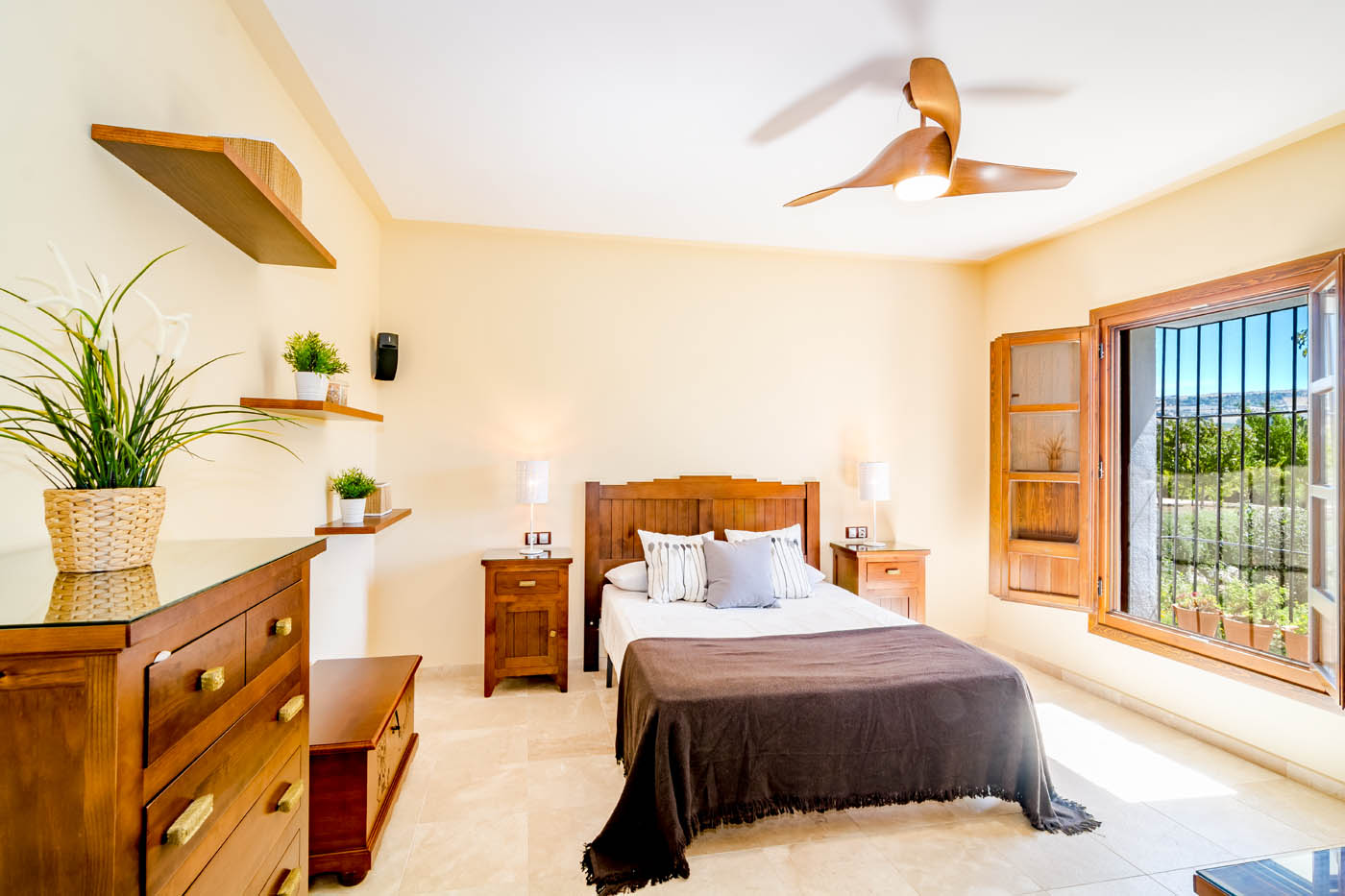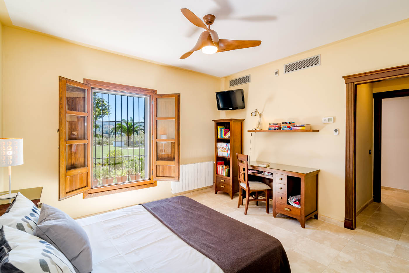 Los baños son frescos y modernos, y las habitaciones están pintadas con colores crema y nogal. El dormitorio en el primer piso cuenta con su propia terraza, con vistas a los jardines, a esbeltas palmeras y a las montañas que se perfilan en la lejanía.