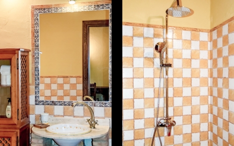 Fuera, no solo hay una piscina para disfrutar del agua, sino también una zona plantada con olivos por la que se puede deambular. Está bien que los niños correteen por ella y exploren, teniendo en cuenta que no se trata de una finca ajardinada, sino de un auténtico enclave natural de Ronda, por donde andan conejos ocasionalmente, perdices con sus polluelos en primavera y águilas sobrevolando el terreno.
