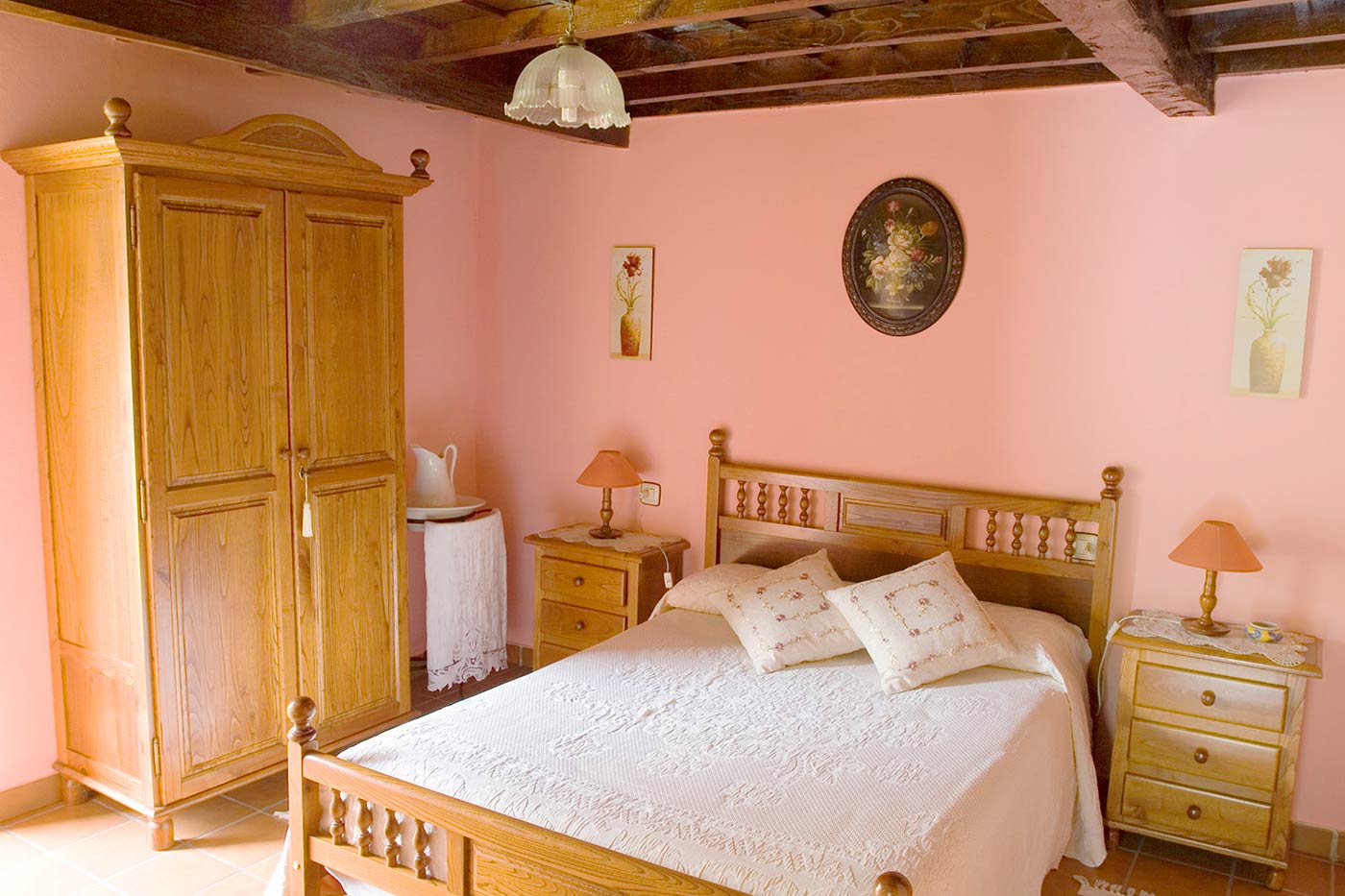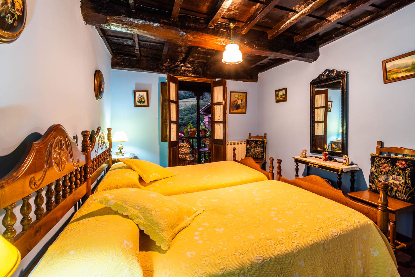 Cada una de las tres habitaciones tiene algo que la recomiende. Una de ellas, con dos camas individuales, comunica con el balcón-terraza; una doble tiene un fabuloso balcón orientado hacia el sur; y la otra doble tiene puertas que abren a un jardín con un bonito y tupido césped, justo al lado de una capilla que pertenece a la casa.