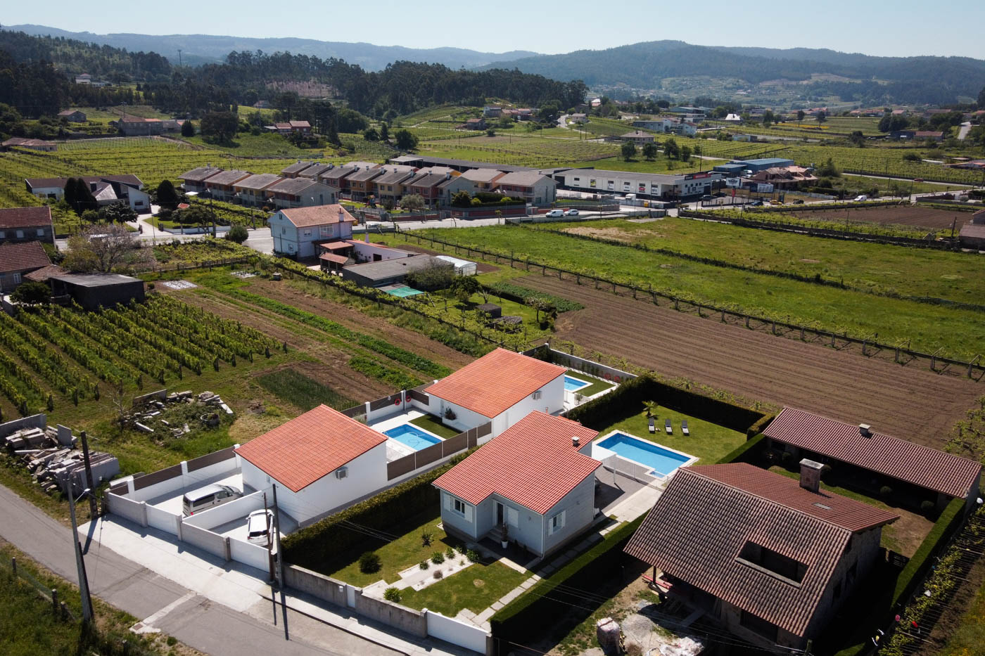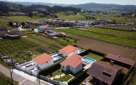 Aquí estamos en una zona residencial donde tenemos otras casas colindantes. No es una gran finca, sino una aldea donde se alternan casas con viñedos. A pesar de estar a menos de 10 minutos de un demandado recurso turístico como puede ser el pueblo marinero de Cambados o las playas de las rías Baixas, aquí no se respira un ambiente genuino gallego y no turístico.