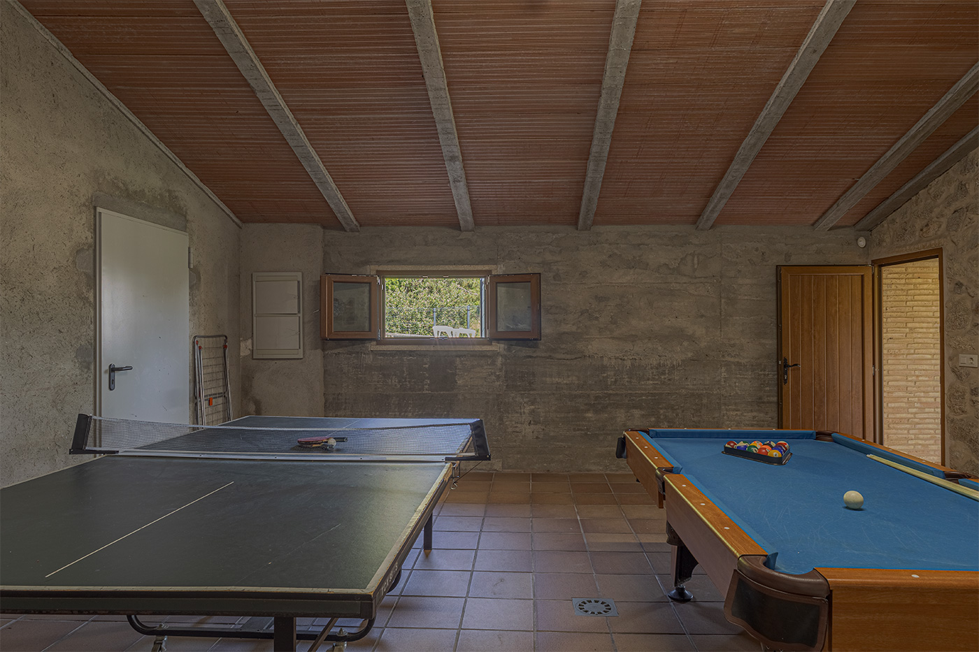 Internet WiFi (fibra óptica); Smart TVs (4); Piscina privada y cerrada (8 x 4 metros, 1.55 metros de profundidad aprox.); Porche amueblado; Barbacoa de obra; Tumbonas; Mobiliario exterior; Jardines privados (2.000 m2); Juegos de interior: mesa de billar, tenis de mesa, dardos.