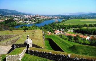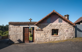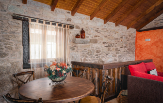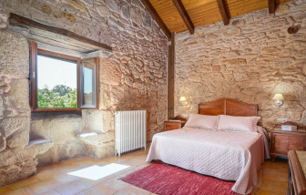 Casa familiar de piedra en aldea junto a frontera del río Miño con Portugal