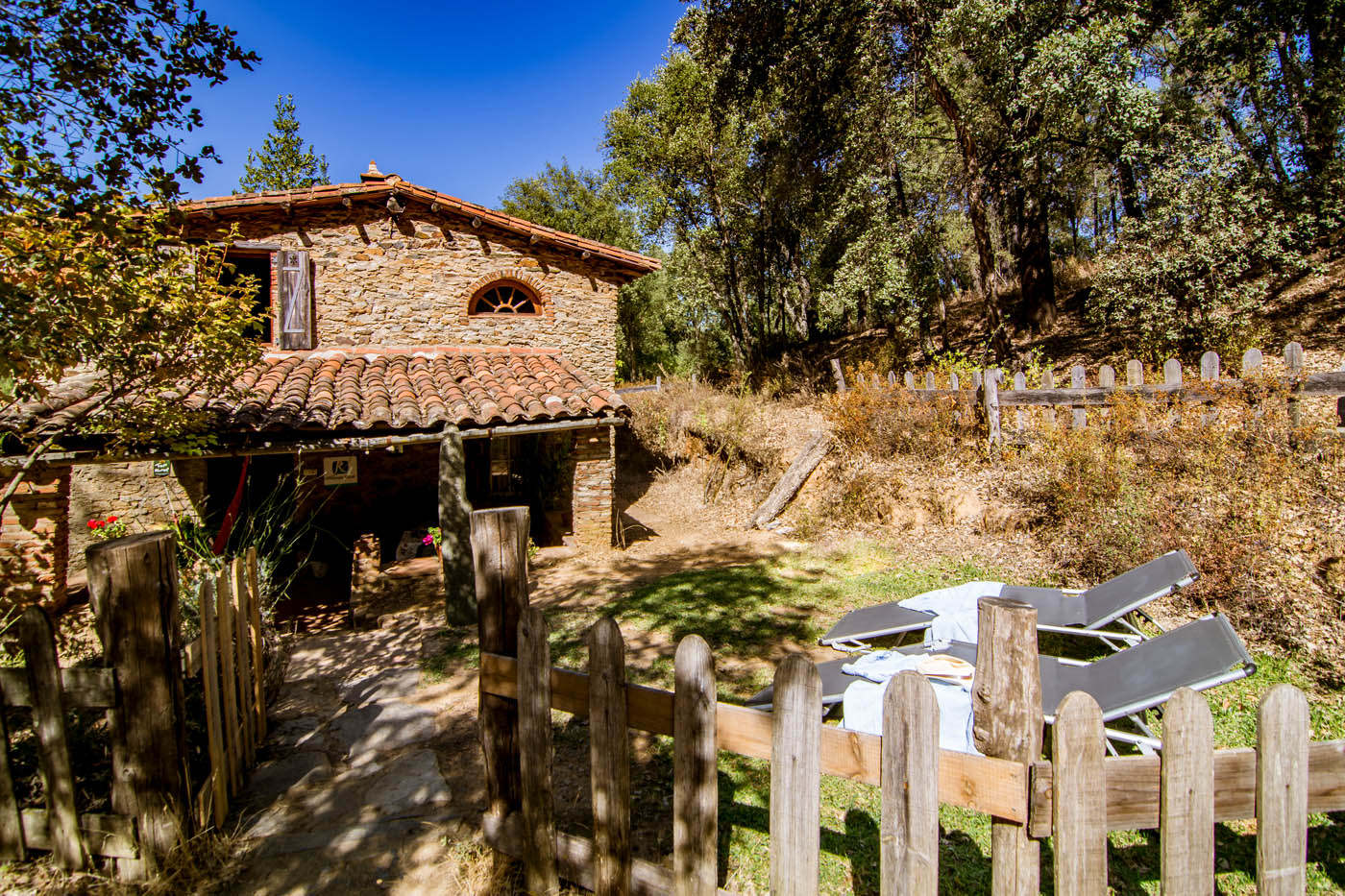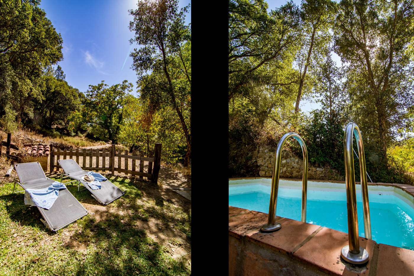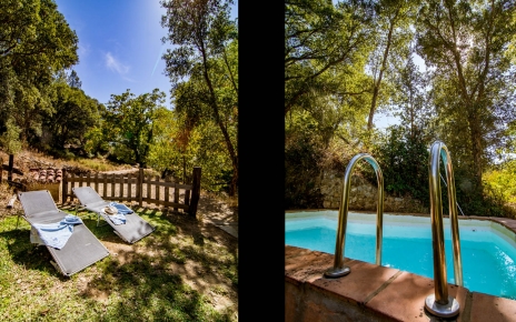 It's located within a large organic farm, where it occupies its own undisturbed, forested corner with woods and a small private swimming pool: it's a very tranquil spot.
