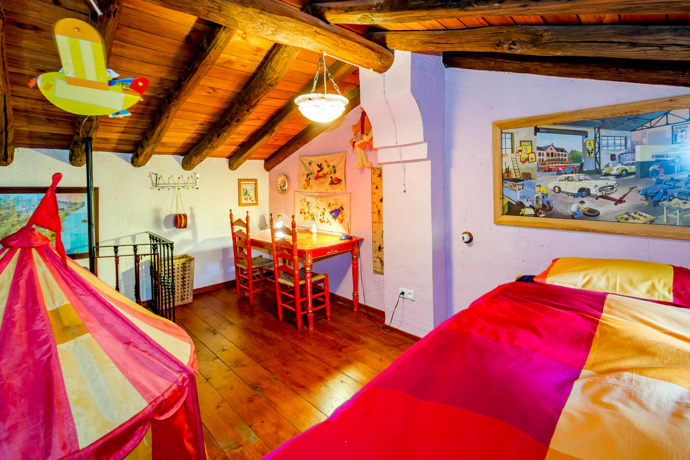 The children's bedroom is up a banistered wooden staircase in a safe gallery above the main double bedroom.