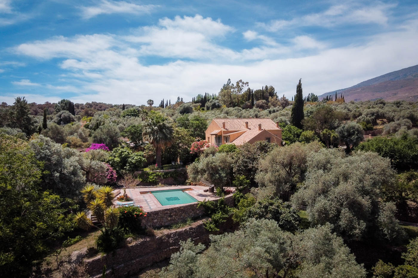 Here you are surrounded by orange and lemon trees, orchards and olive trees which are hundreds of years old. The backdrop is the imposing Sierra Nevada mountains.
