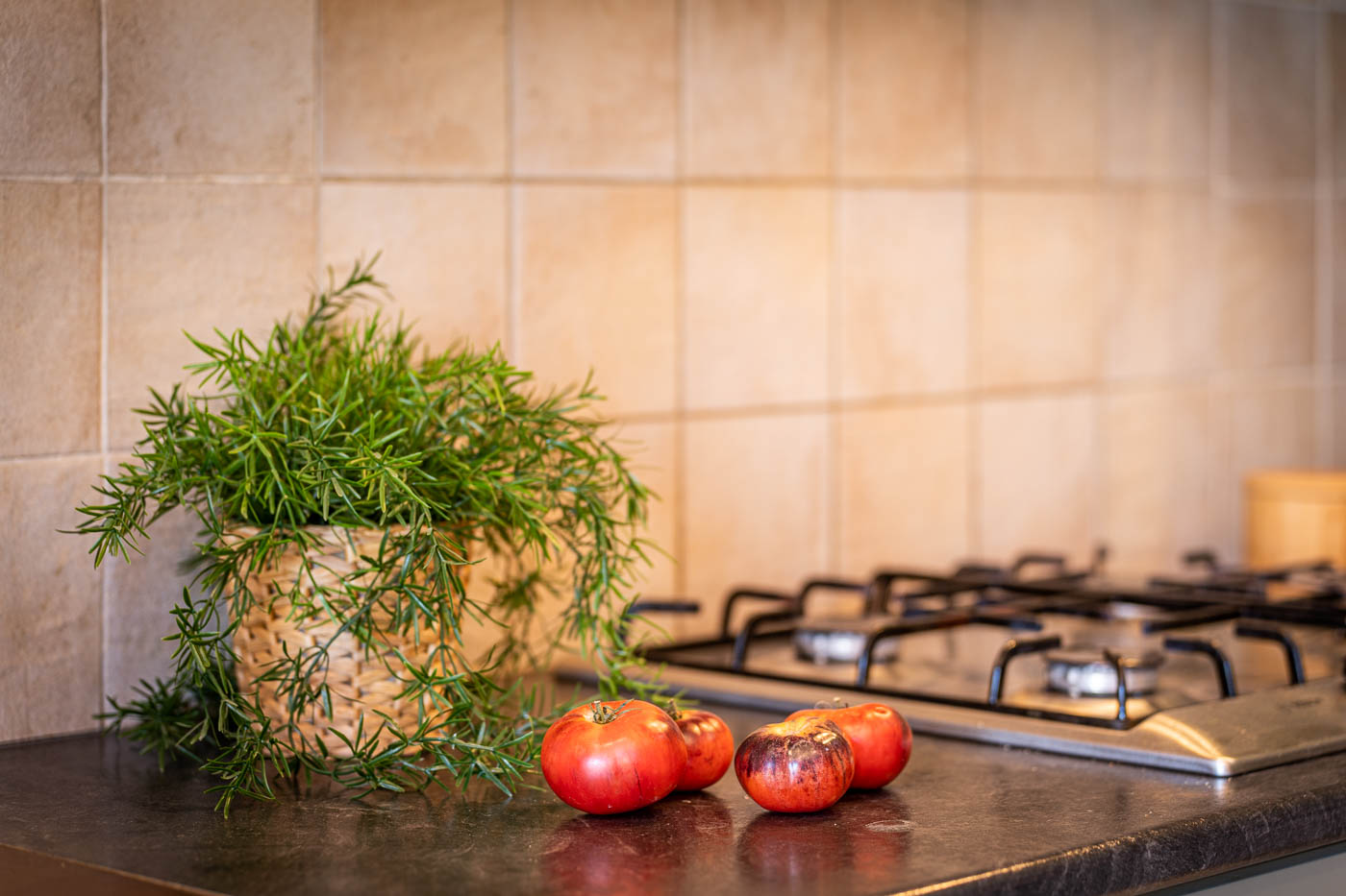 The inside of the house is attractive and well-appointed, with a kitchen where you can enjoy cooking. We found the kitchen spick and span and nicely fitted out.