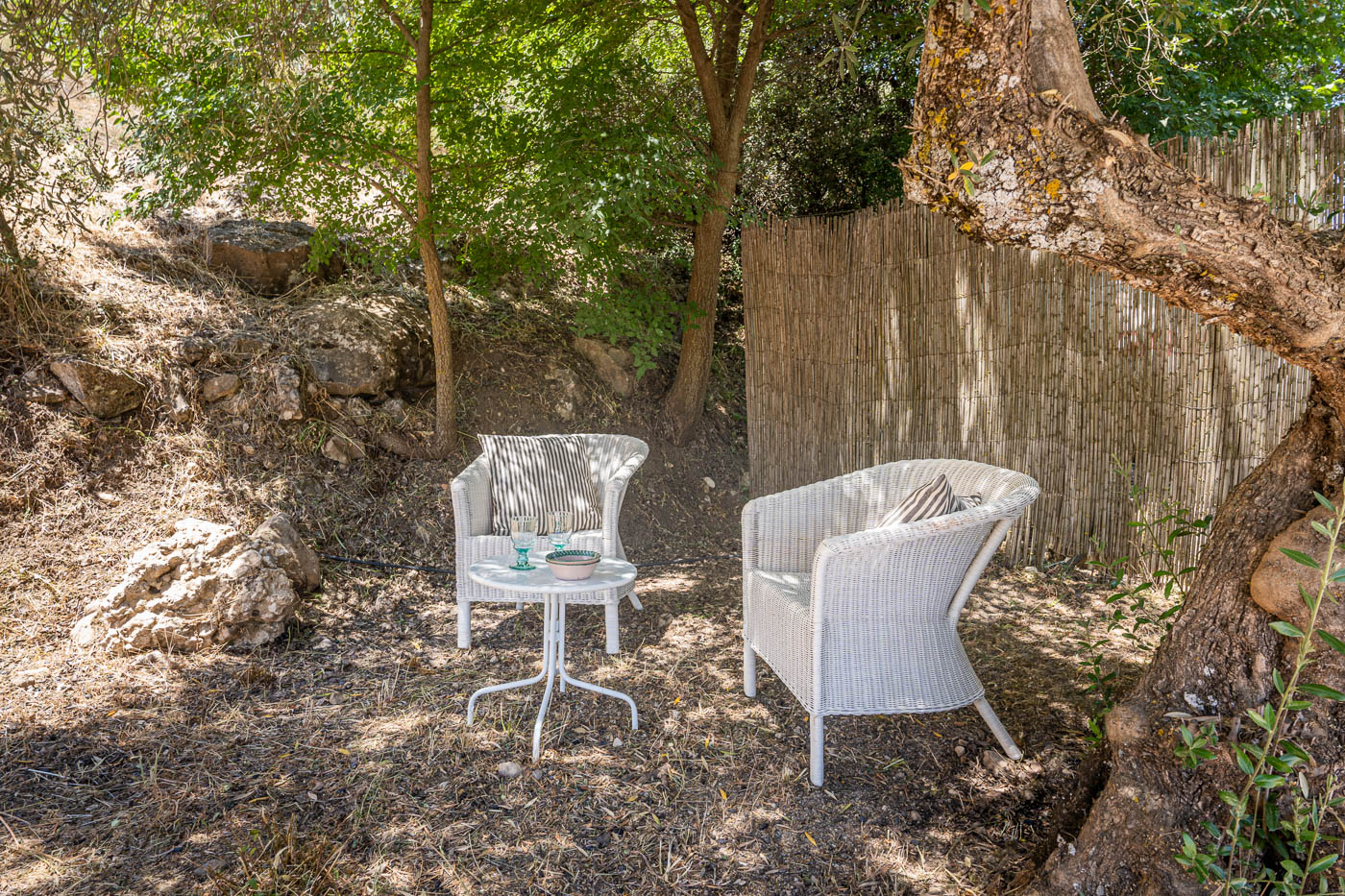 This holiday property is set in an acre of natural woodland, which rises the hillside behind the villa. Wildflowers of all sorts grow among olive trees and evergreen oaks.