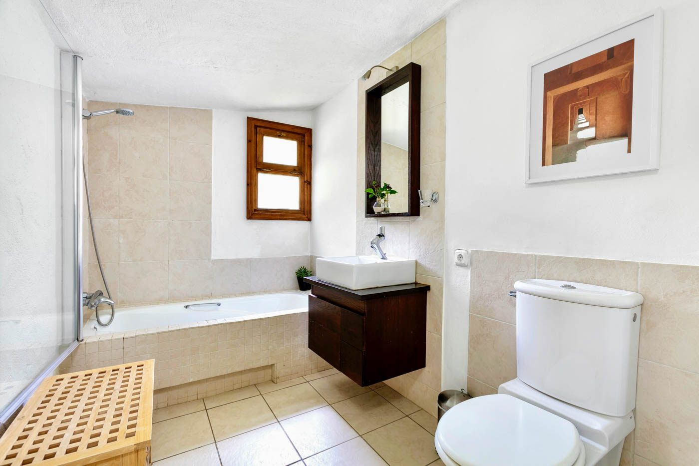 Mediterranean-style architecture with vaulted ceilings adorned with centuries-old wood beams welcomes you to the airy, multi-level villa. Glass doors and windows brighten rooms with natural light, taking in views of the resort-style grounds and striking Andalucían mountains.