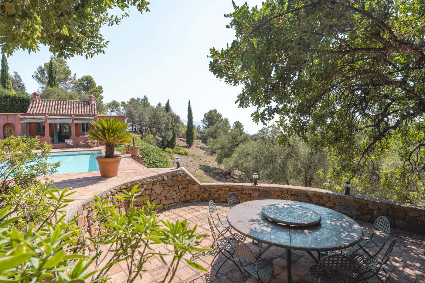 Dining terrace; chill-out area; garden terraces with gazebo; pool terrace; parking area; private grounds (2 hectares).