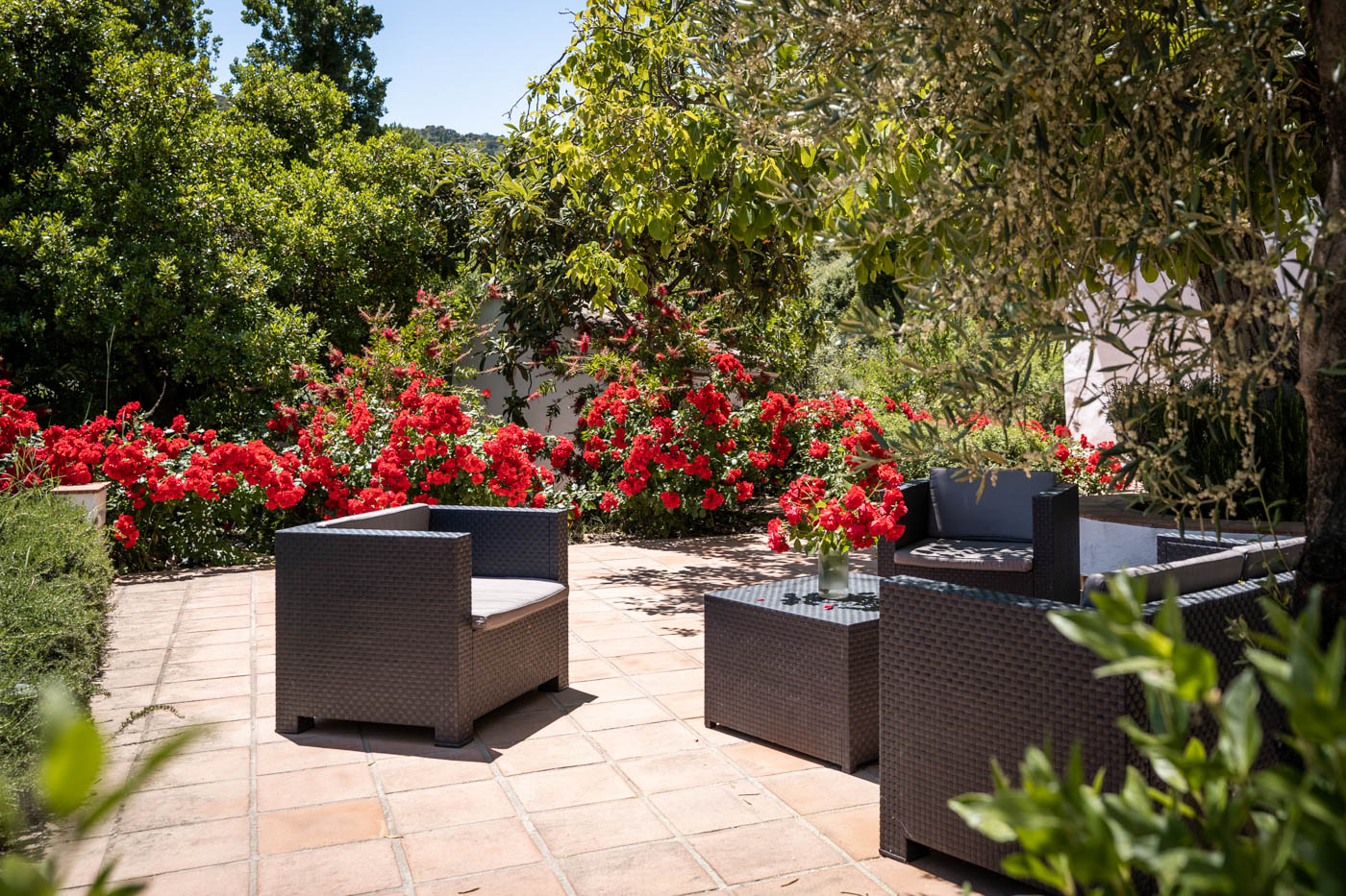 The outdoor furnished terraces are superb spots to read a book, relax and have a drink. The gardens looked very pretty on our visit, and we thought the setting was inspiring for nature lovers who love unspoilt Mediterranean mountains.