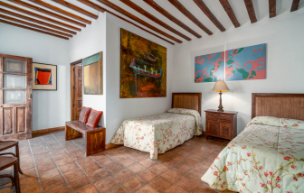 A beautiful and impressive Castilian property with a large patio garden in a small, traditional town. Very private and with grand style, set off by dashing contemporary art. Quality accommodation for all your guests. Sleeps 16.