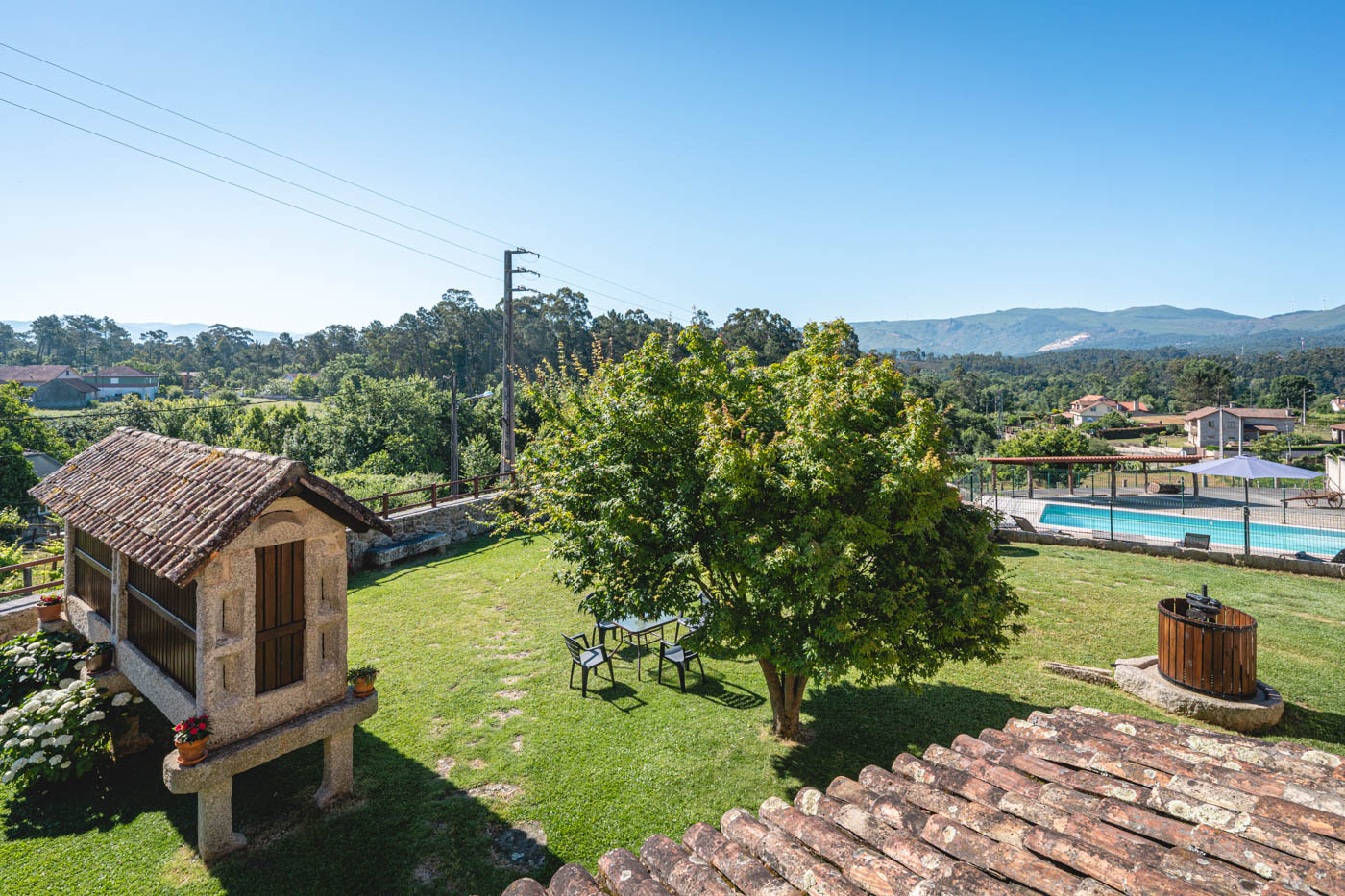 The garden, which also hosts a traditional Galician pillared grain store, ends at the swimming pool.