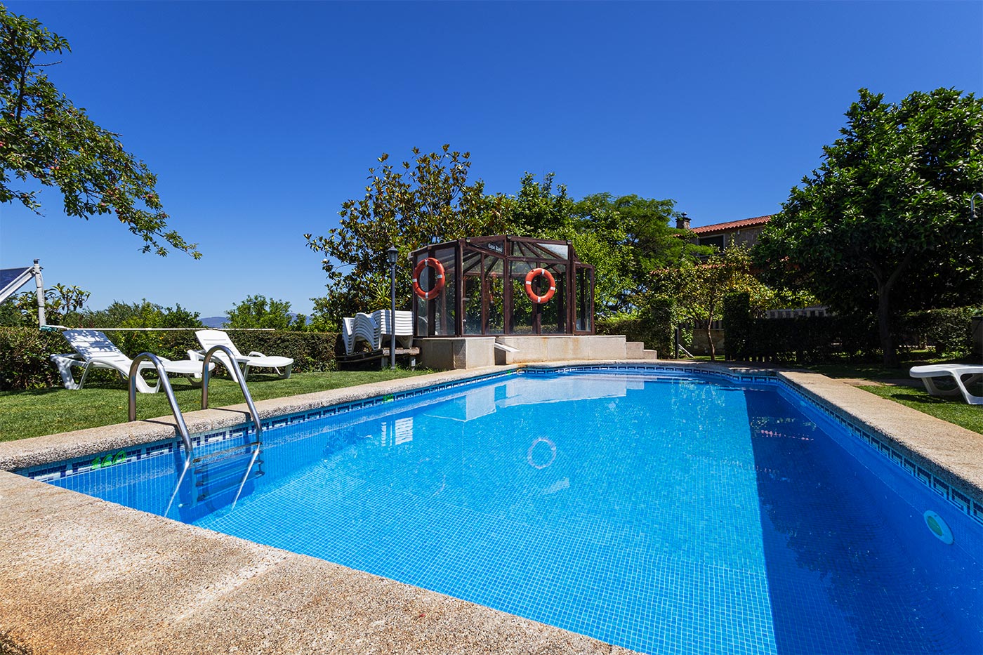WiFi internet (fibre-optic); TVs (7); Background music system; Private, salt-filtered, gated swimming pool (8 x 5 metres, 1.10 to 1.60 metres deep approx.); Outdoor covered jacuzzi (at an additional cost); Furnished patio; Built-in barbecue (2); Wood oven (indoors); Furnished terraces; Furnished porch; Sunloungers; Furnished pergola; Trampoline, Swing; Kid’s play area; Private gardens.